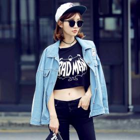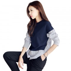 新款学院风韩版时尚太空棉宽松长袖印花圆领卫衣女