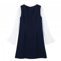 韩都衣舍2017春装新款女装春款拼接喇叭长袖连衣裙中长款时尚韩版 领券立减/单件包邮/七天无理由退换