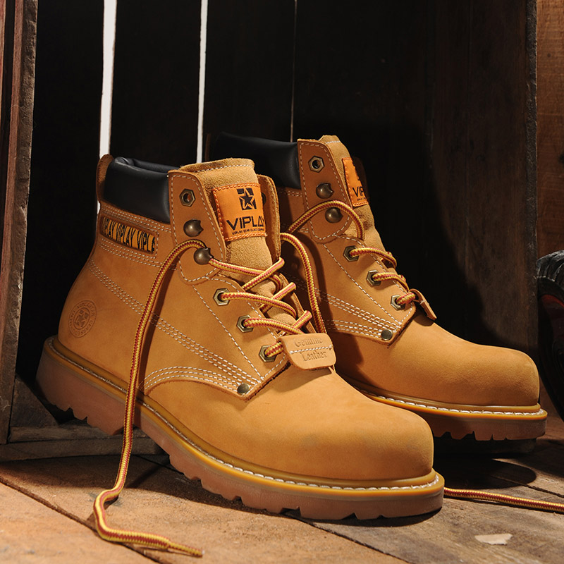 商品名称:春季马丁靴男真皮男靴黄靴工装军靴韩版短靴沙漠靴高帮男鞋大黄靴 头层牛皮