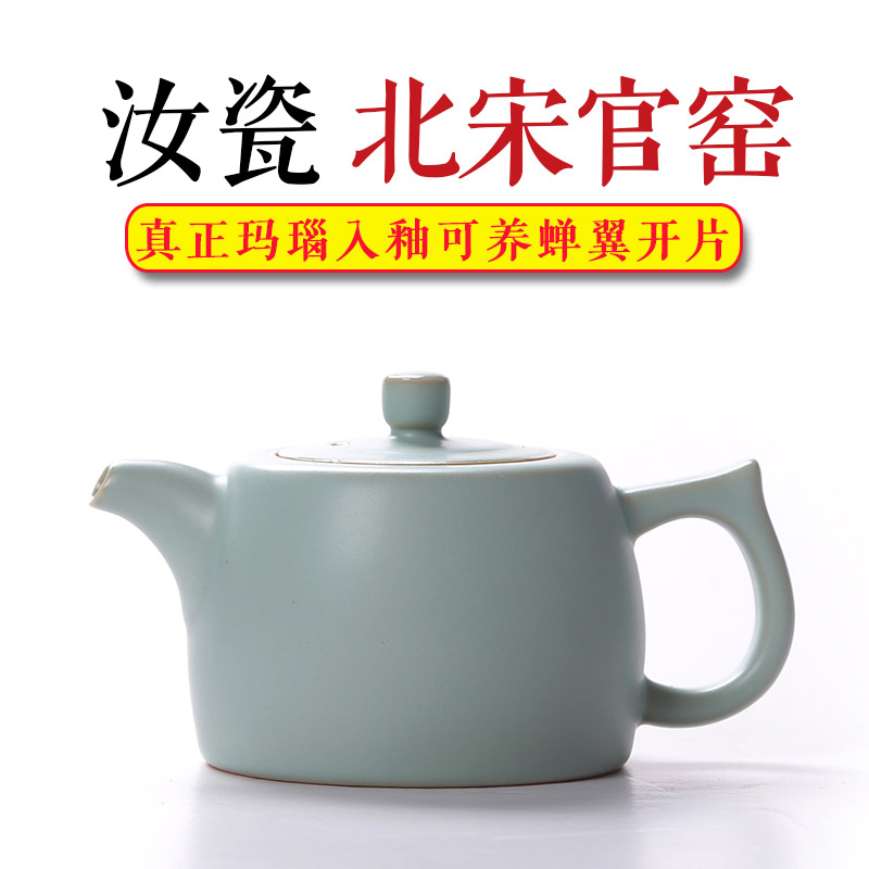 汝窑茶壶开片汝瓷小西施单壶陶瓷功夫茶具家用泡茶壶大号龙泉青瓷 冰裂釉全手工 宜兴 办公室景德镇 创意
